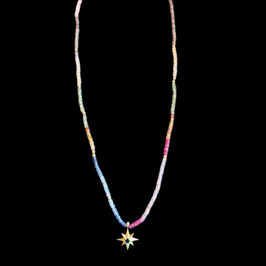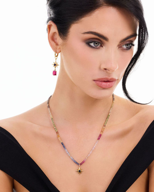Compass Star Multi Sapphire and Ruby Necklace with Gold