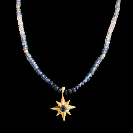 Compass Star Multi Blue Sapphire Necklace with Gold