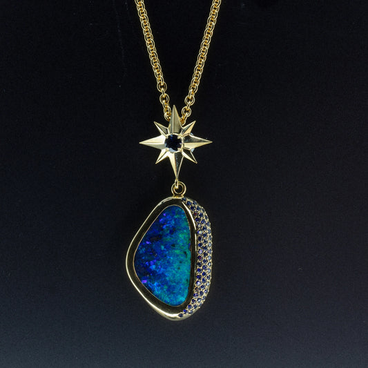 Compass Star Couture Opal and Sapphire Pendant in 18 carat Yellow Gold