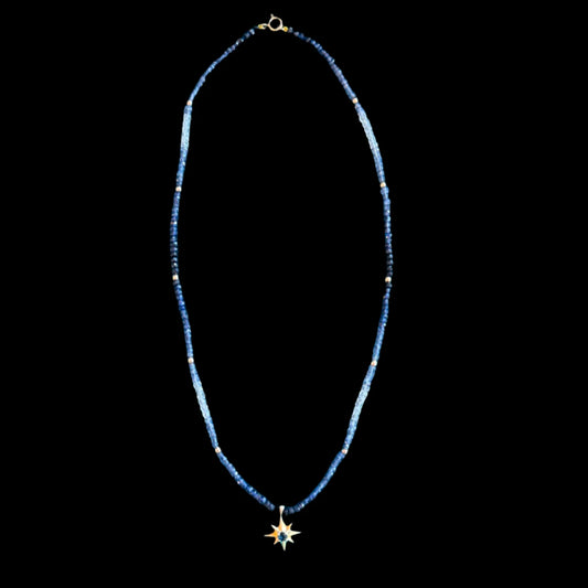 Compass Star Multi Blue Sapphire Necklace with Gold